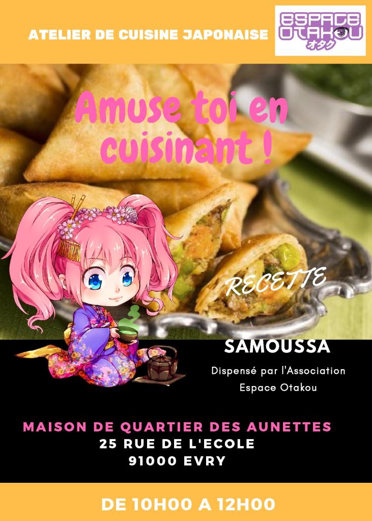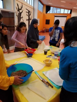 Le cinquième atelier cuisine s’est déroulé le 20 janvier 2018 de 10h00 à 12h50 avec les membres de l’Association Espace Otakou dans la Maison de Quartier des Aunettes. Il y avait 18 participants à l’atelier dont des familles, collégiennes, adhérents de l’Association Espace Otakou et une personne âgée.