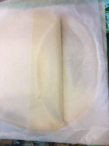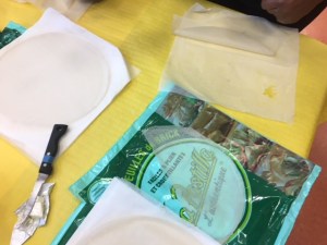 Puis nous avons fait une démonstration de pliage de la feuille de brick afin de pouvoir faire des triangles.