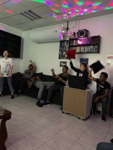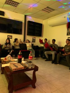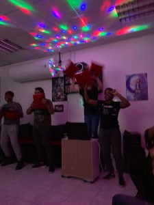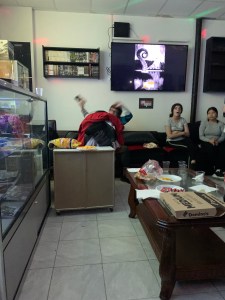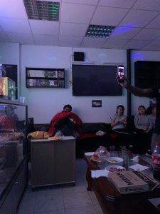 Etant donné que nous apprécions beaucoup chanter des OP/ED d’animes japonais, nous avons décidé de faire un karaoké tout en ayant des snacks, boissons et pizzas.