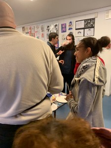 Une fois le tour de l’exposition fait, nous avons proposé au public de se diriger vers le buffet et nous nous sommes mis à discuter avec le public présent de la culture pop japonaise et des dessins qui ont été réalisés.