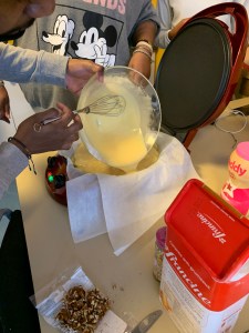 Tout au long de cet atelier nous avons discuté des différentes de pâtisseries et de leur réalisation. Nous avons tous passé un agréable moment. Nous avons fait 2 gâteaux : gâteau caramélisé renversé à l’ananas et un fondant au chocolat aux noix de pecan.