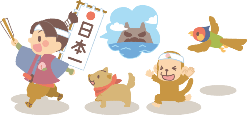 Momotaro répondit : » A l’île des brigands (démons), les punir. » Le chien avança vers Momotaro et lui dit » Et qu’y a-t-il dans ton baluchon? »