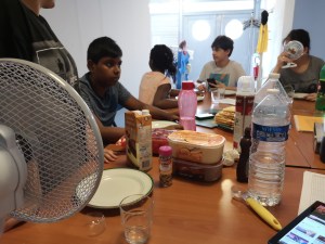 Nous nous sommes par la suite dirigés vers la cuisine pour commencer la cuisson des Samoussa. Nous sommes relégués pour pour pouvoir mettre sur des plateaux différents les samoussa aux différents goûts pour que ça ne se mélanges pas.