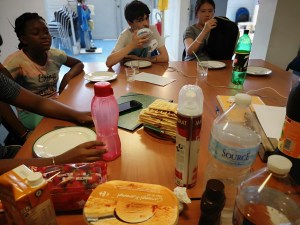 Marine a proposé à tous les participants une boisson chaude avant de commencer l’atelier cuisine. Nous nous sommes donc dirigés vers la cuisine afin de prendre des tasses de thé ou de café afin de nous réchauffer avant de commencer l’atelier cuisine.