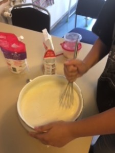 Avant de préparer le nappage nous avons dans un premier temps fait des gaufres que nous avons déposés sur une feuille de papier cuisson.