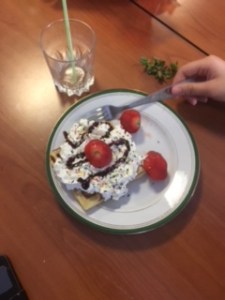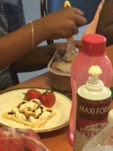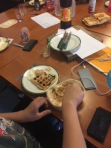 Une fois que les nappages ont été réalisés, nous avons laissé reposer les gaufres nappées environs 15 à 20 minutes. Puis nous nous sommes réunis pour la dégustation.