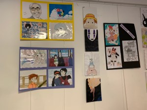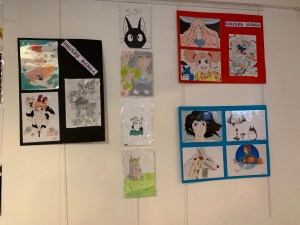 Dans le second pôle nous avons mis en évidence des dessins faits par l’équipe Espace Otakou et les adhérents qui ont travaillé sur les œuvres de Hayao Miyazaki. En effet, nous avons eu l’idée de nous inspirer des animations japonaises du célèbre Hayao Miyazaki car ses œuvres sont d’une beauté fascinante et que les histoires sont toujours aussi accrocheurs d’autant plus que nous appréciant ses talent de dessinateur.