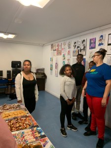 Une fois le tour de l’exposition fait, nous avons proposé au public de se diriger vers le buffet et nous nous sommes mis à discuter avec le public présent de la culture pop japonaise et des dessins qui ont été réalisés.