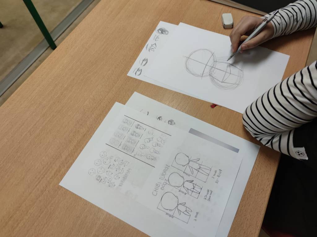L’association Espace Otakou a mis en place un atelier dessin spécial chibi. Durant cette séance, on a appris aux enfants comment faire un chibi en leur expliquant les étapes.